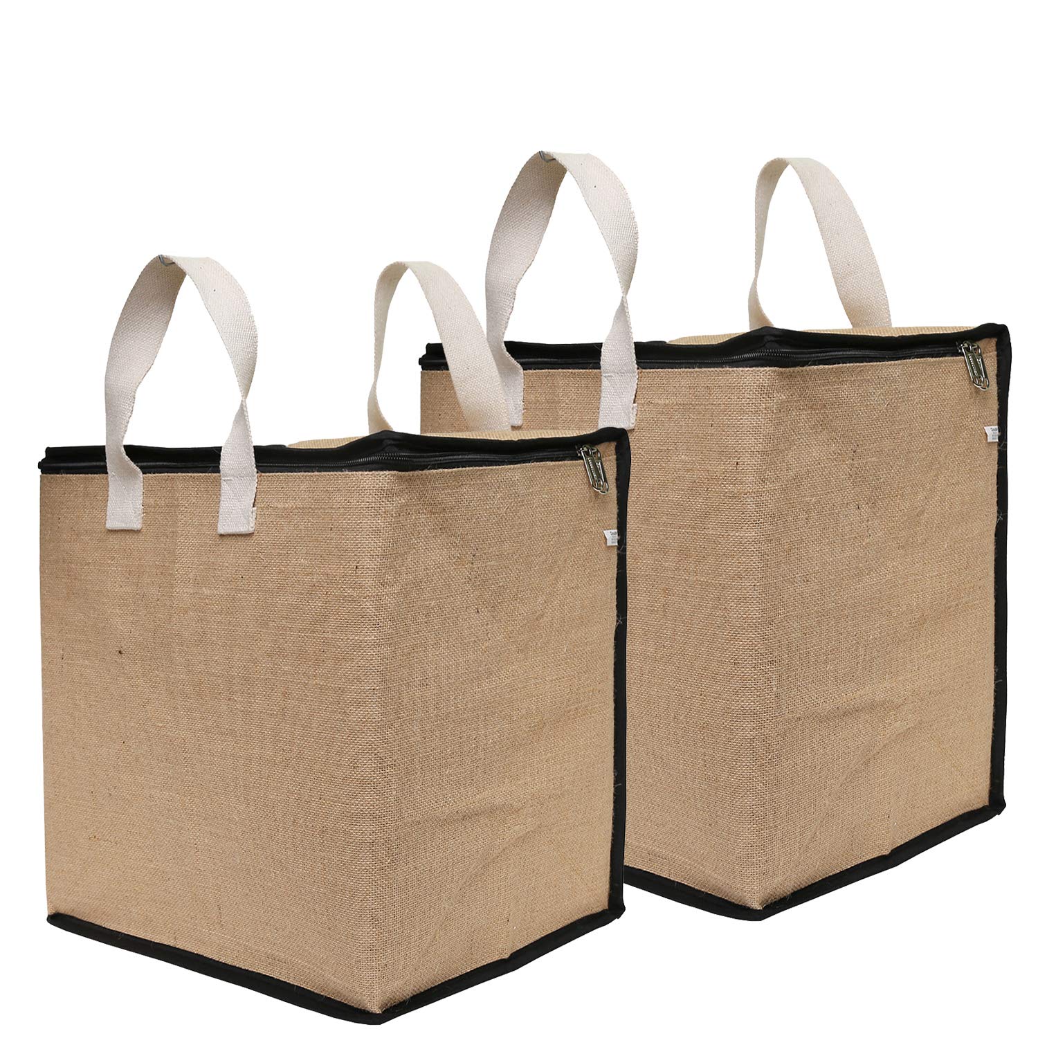 DOUBLE R BAGS Jute Shopping bags with Dual Zippers Pack of 2 (Natural Color)