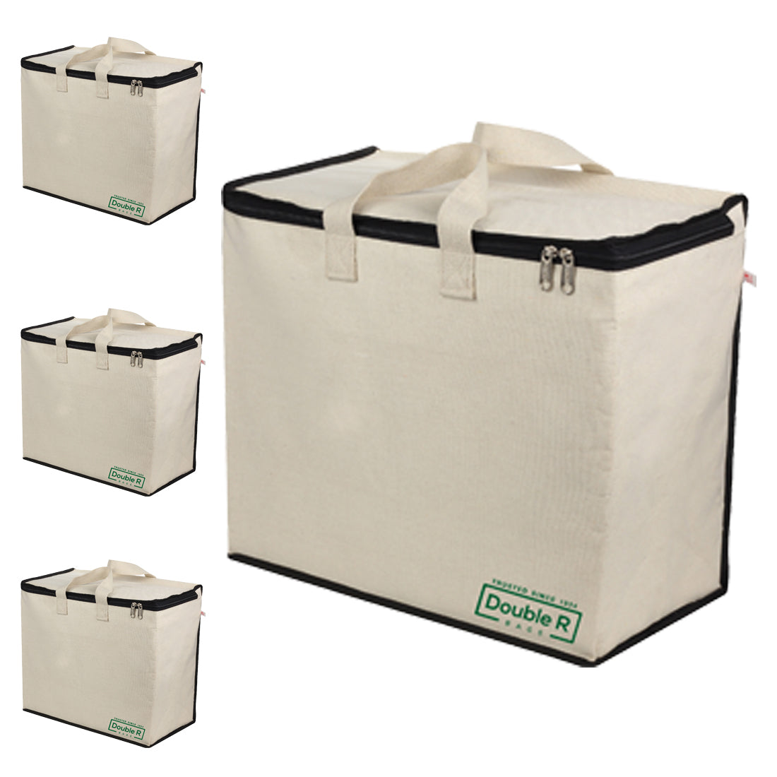 DOUBLE R BAGS Canvas Bag with Cotton Handles and Covers Zip Bags Pack Of 2 (Black)