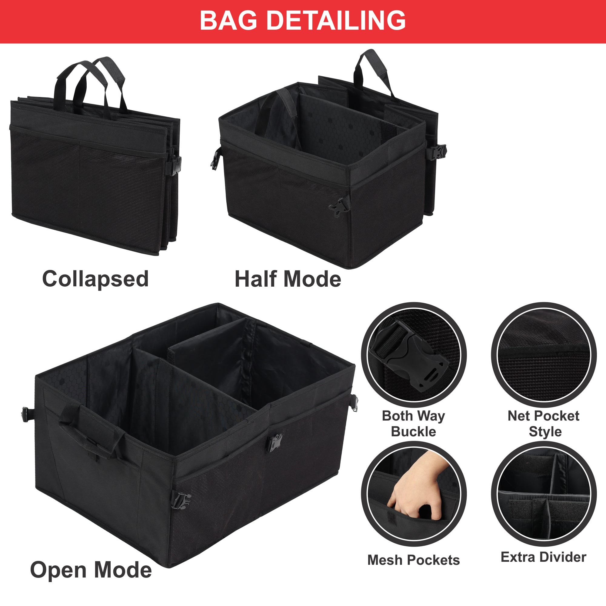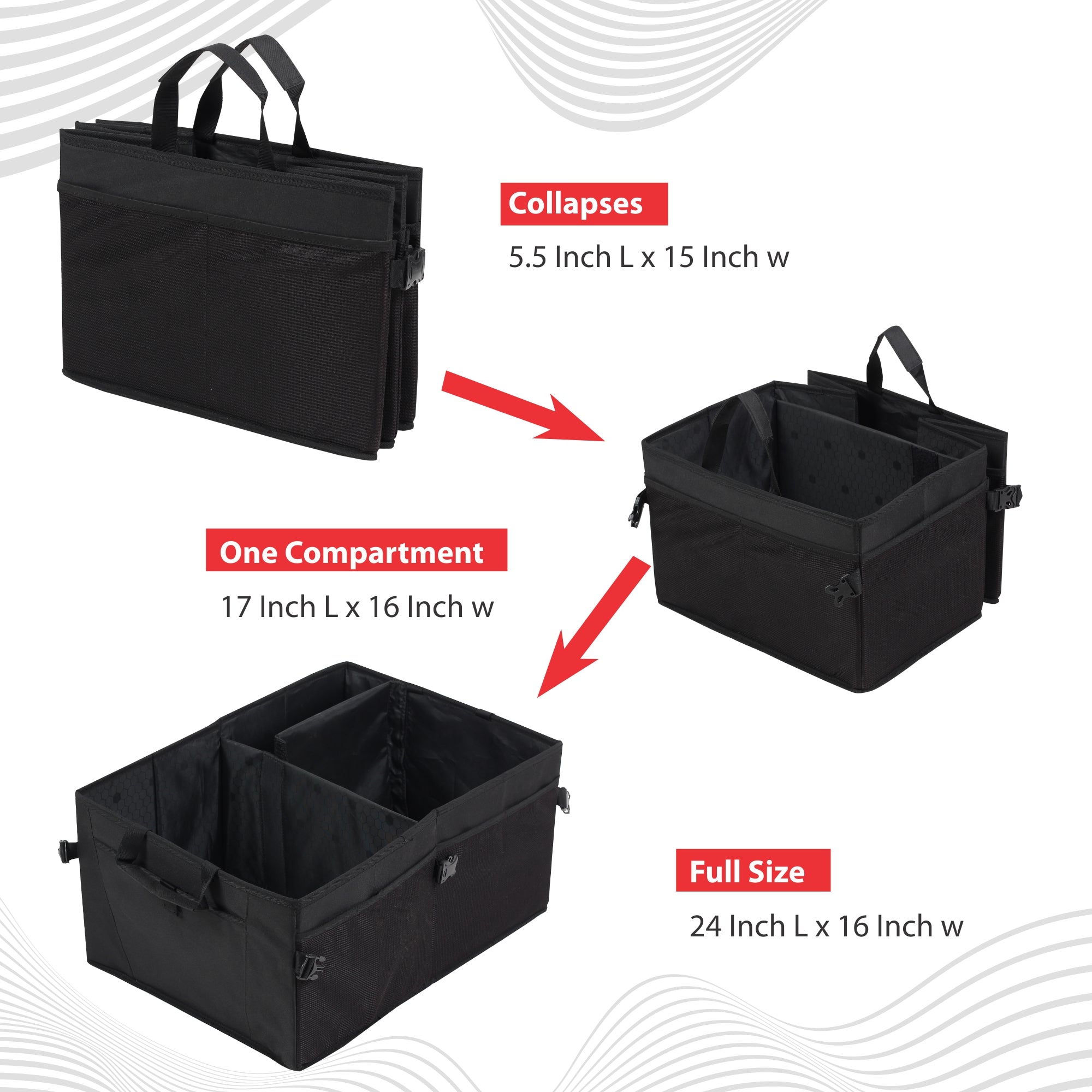 3 Large compartments for grocery items, tools, travel accessories, sports gear and emergency equipment. Size - Expand...