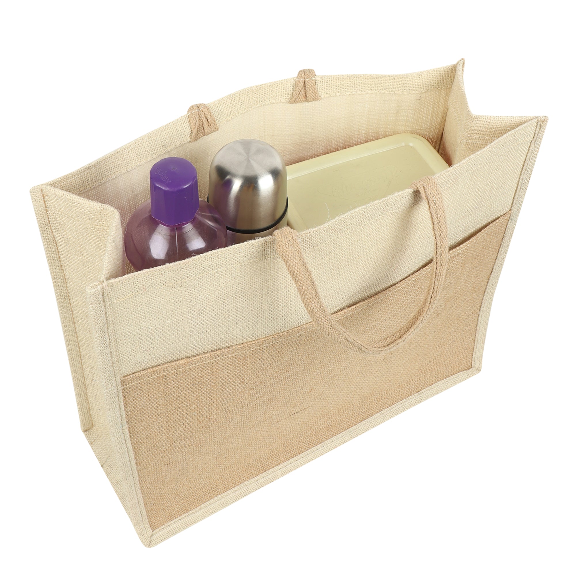 Jute Grocery Shopping Bags for Carry Milk Fruits Vegetable with Reinforced Handles (Pack of 2)