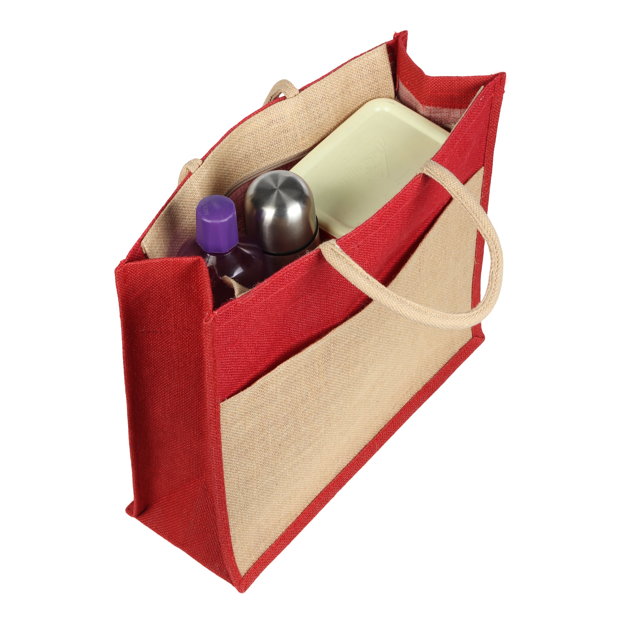 Jute Grocery Shopping Bags fora Carry Milk Fruits Vegetable with Reinforced Handles With Zipper (Pack of 2)