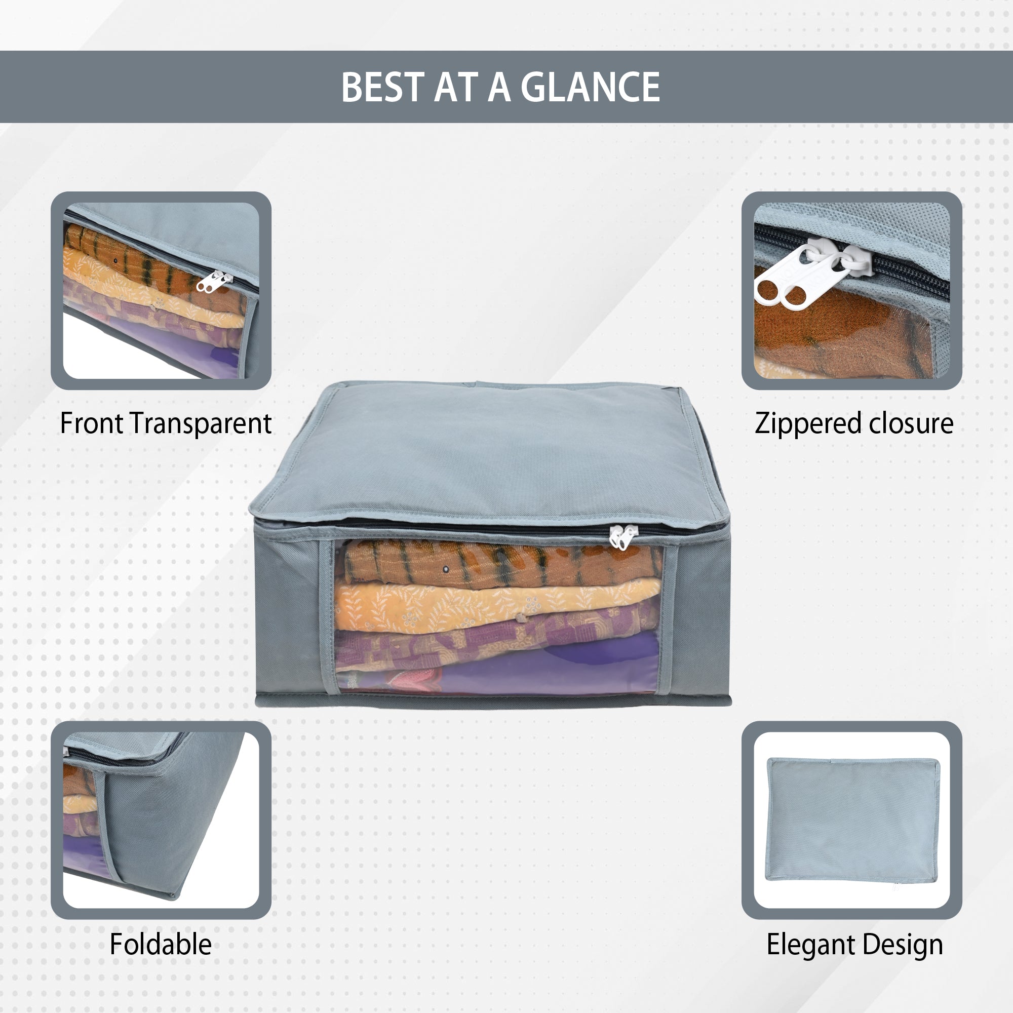 Organize your clothing accessories like sarees, suits, blankets, and towels with ease using our Saree Covers/Bags. Experience the convenience of a durable stitching and zipper system that ensures your garments are protected and easily accessible whenever you need them. Invest in our high-quality Saree Covers/Bags today and simplify your storage and travel needs.